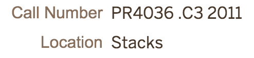 The call number actually starts with two letters: PR. These letters have nothing to do with the title of the book. Rather, they point to the book’s subject, English literature. Any book in your college library that focuses on English literature will have a call number that starts with those letters.
